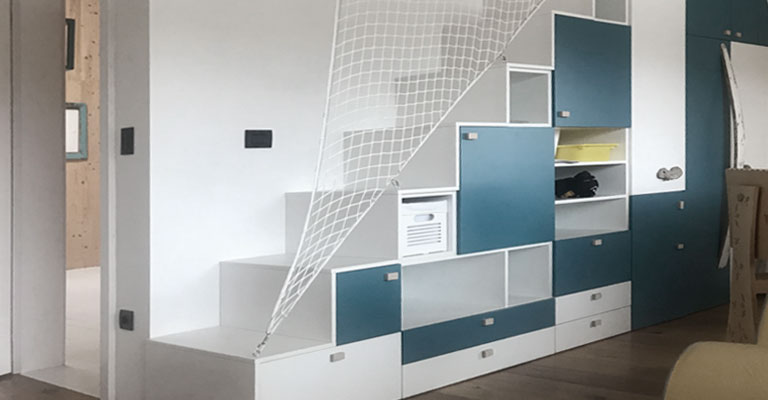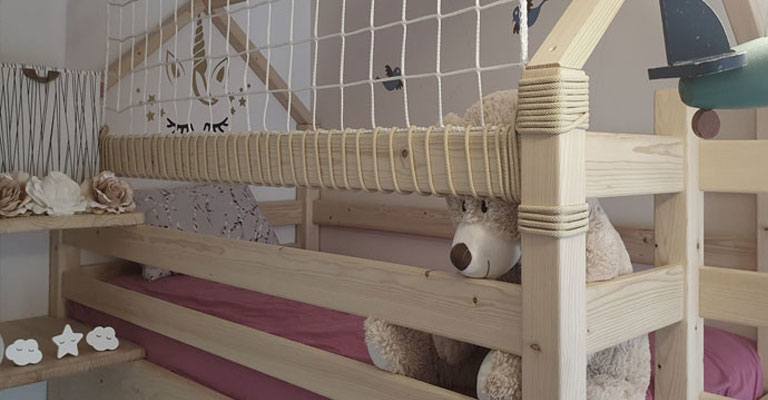 Yes, Poliplet Ambient nets, ropes and strips are suitable as safe fencing elements for domestic galleries, attics, bunk beds and staircases. They are custom-made with different colors, mesh fields and ropes, they provide protection against falls and at the same time preserve light and the aesthetic appearance of the room.